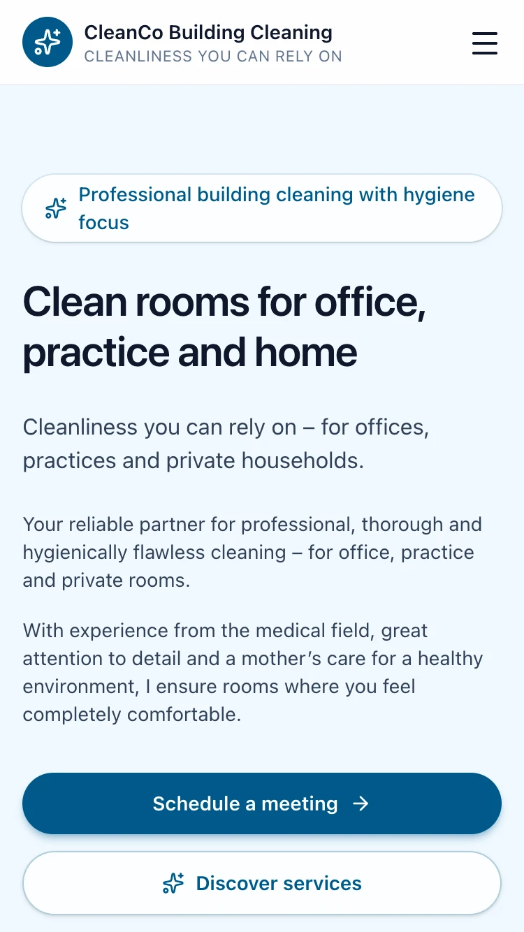 As a small cleaning company, we never had time for a website. Now we were able to get started ourselves in just a few minutes – without an agency and without tech frustration.