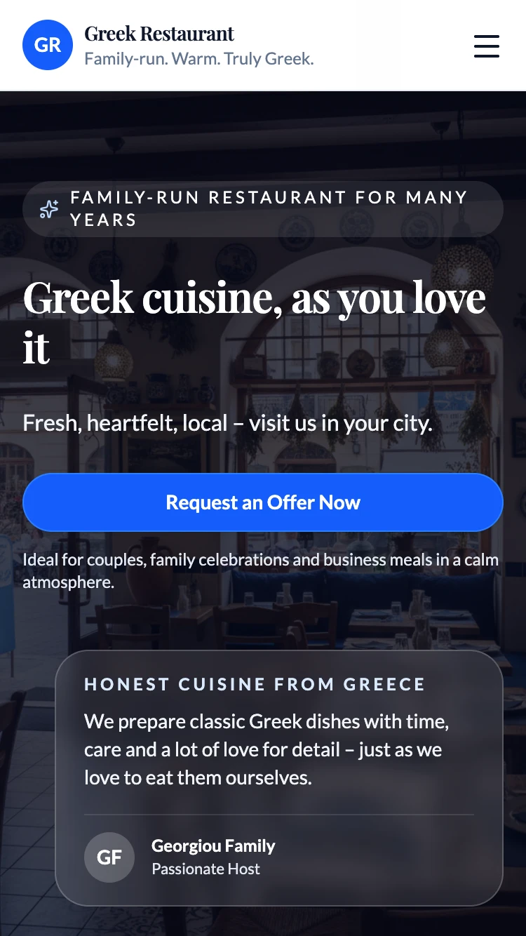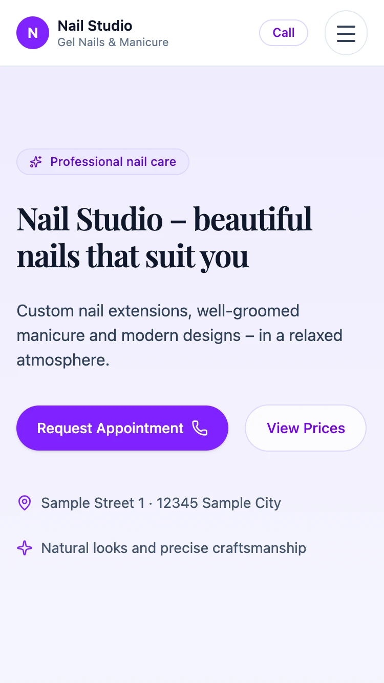 Optimized for trades, salons, practices, cafés and small businesses. The structure helps you get found better on Google without having to know SEO.