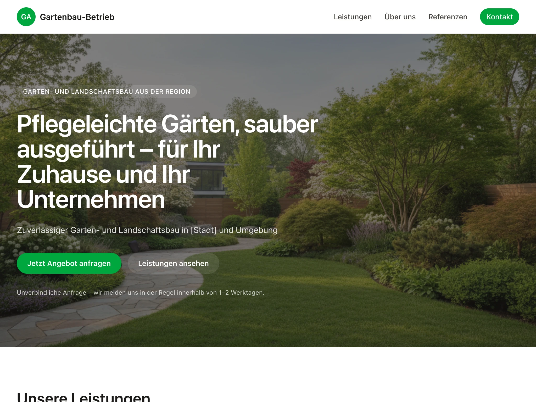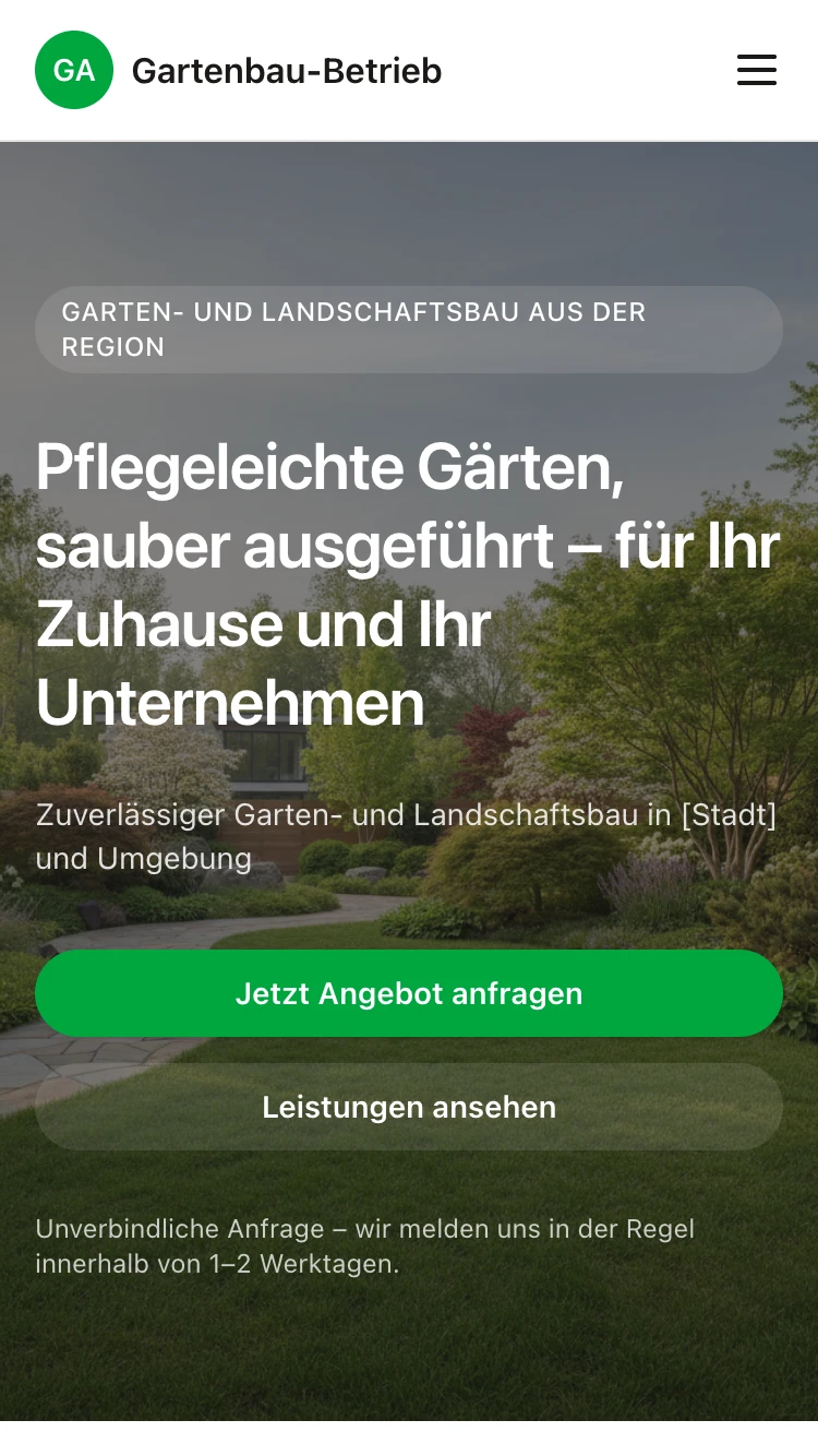 Starte schnell mit einem Garten- und Landschaftsbau-Onepager und passe ihn jederzeit an.