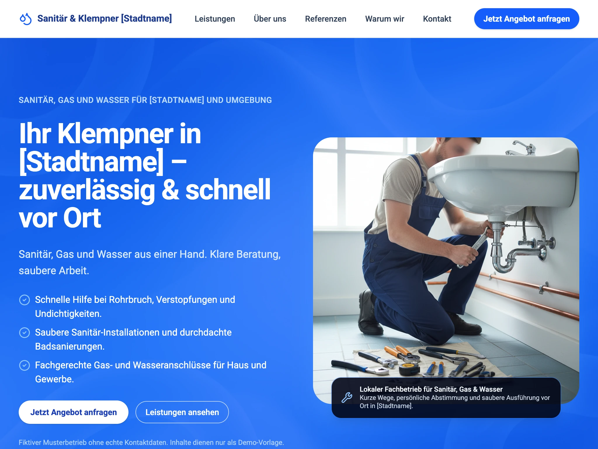 Optimiert für "Klempner in der Nähe" mit klarer Hotline.