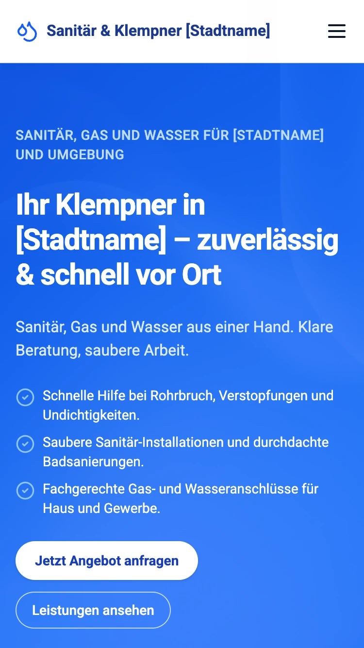 Starte schnell mit einem Klempner-Onepager und passe ihn jederzeit an.
