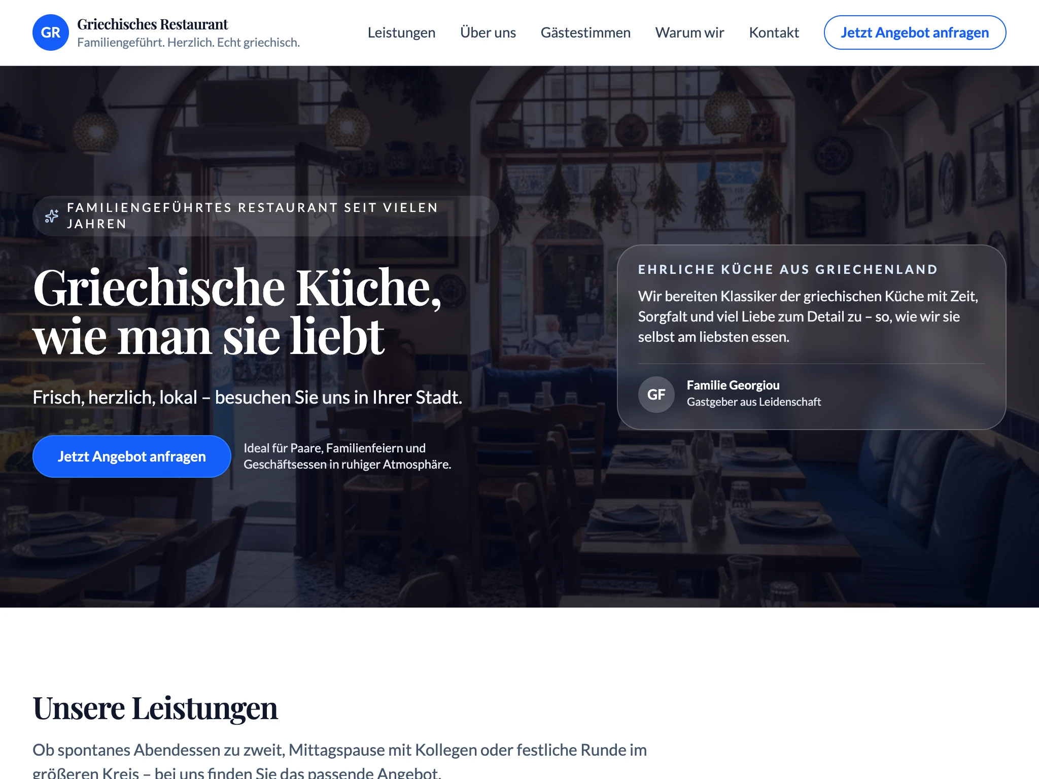 Starte schnell mit einem Restaurant-Onepager und passe ihn jederzeit an.